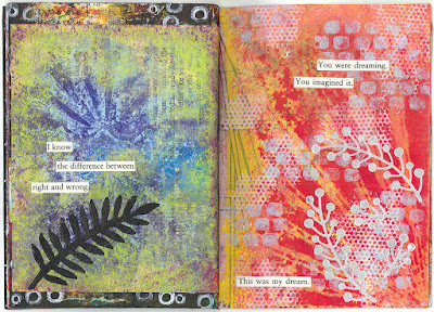In Part One, I used word stickers to decorate my pages. Here, I used random phrases from a book I was destashing.